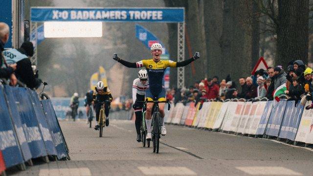 Kay De Bruyckere verstevigt ook zijn leiderspositie in de X2O Badkamers Rookie Trophy dankzij zijn overwinning in deze Azencross.